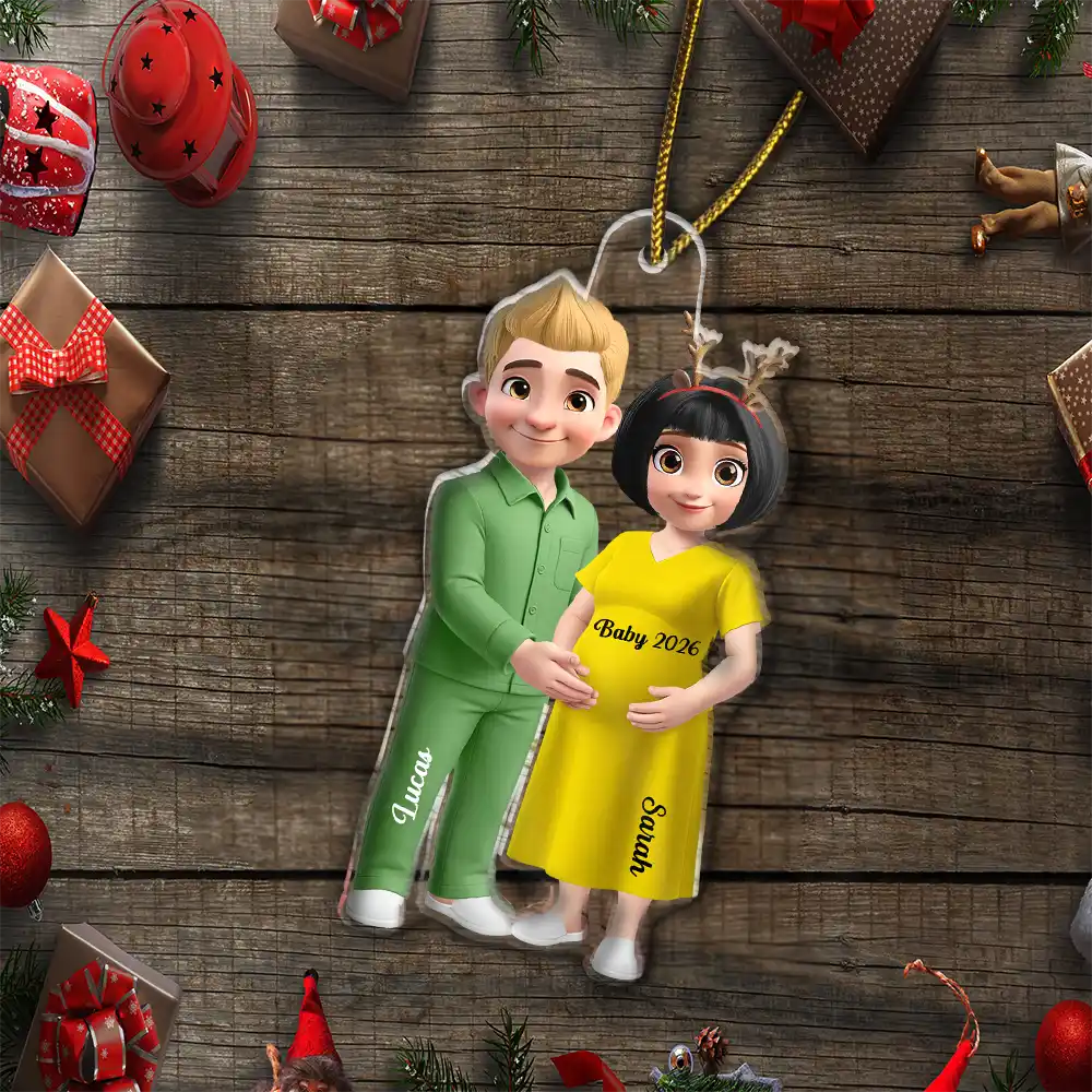 3D Effect Couple Expecting Parents, Baby Expecting, Baby Announcement - Personalized Custom Shaped Acrylic Ornament