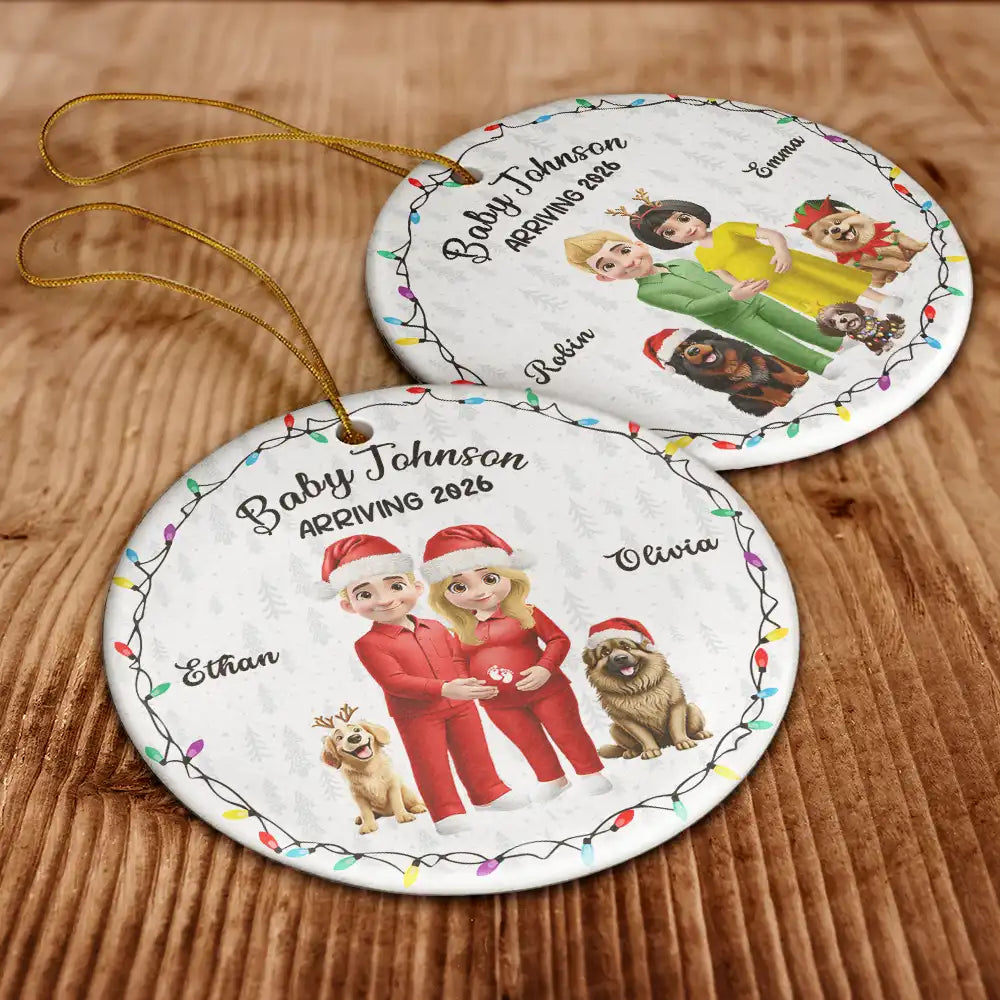 Baby Arriving Expecting Parents 3D Effect, Pet Parents To Human Parents - Personalized Circle Ceramic Ornament