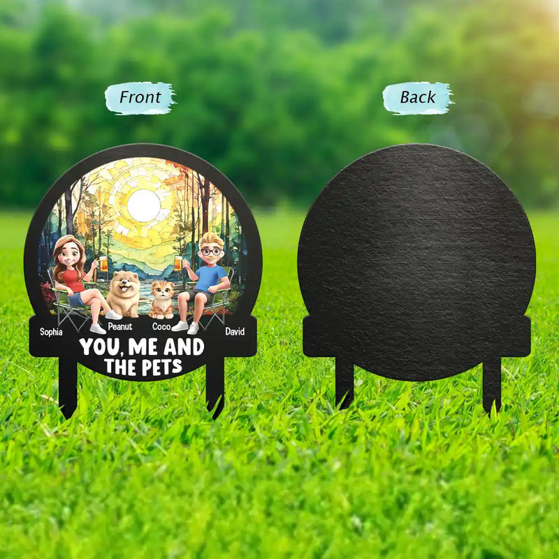 Beach You, Me And The Dog Cat - Personalized Metal Garden Stake