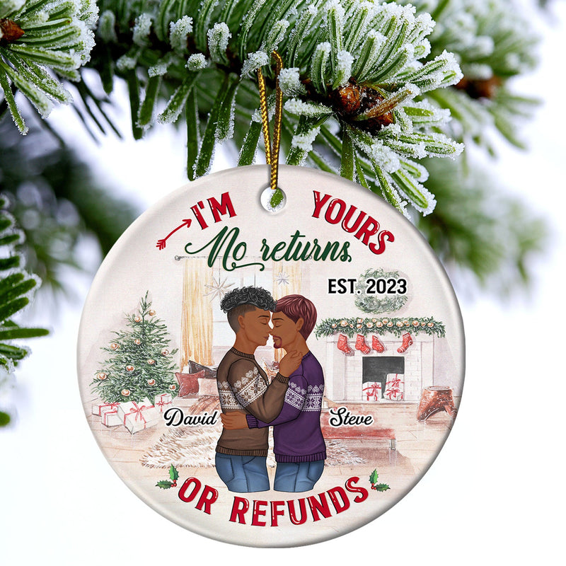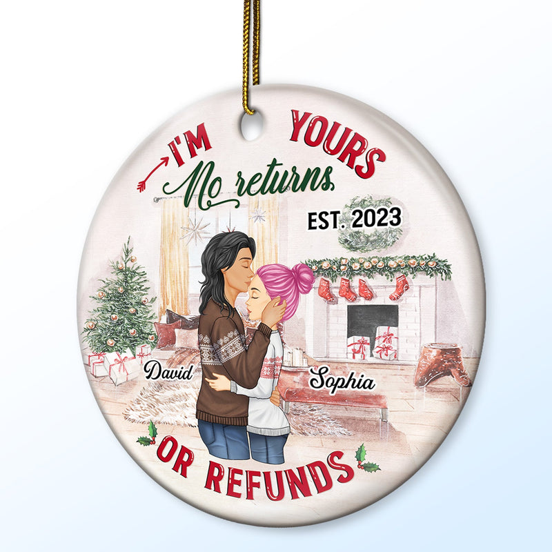 No Returns Or Refunds - Christmas Gift For Couples - Personalized Custom Circle Ceramic Ornament