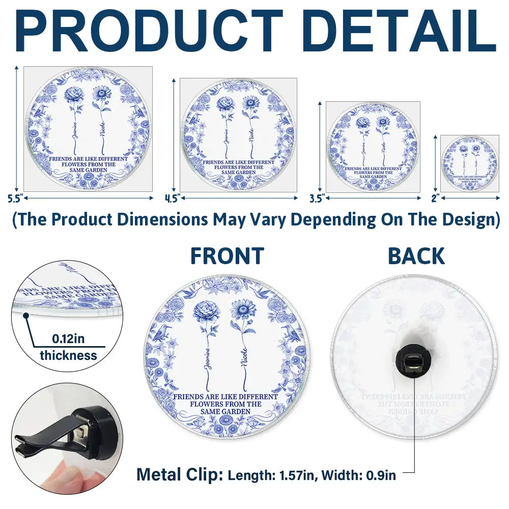 Discover the joy of celebrating friendship with the Toile De Jouy Birth Flower Grow An Old Friend - Personalized Acrylic Car Vent Clip, a unique keepsake that makes the perfect gift for bestie, sisters, or old best friends. Whether for Birthday, Christmas, Thanksgiving, Mother’s Day, or even just to say “I appreciate you,” this delightful accessory brings happiness and meaning to every ride.